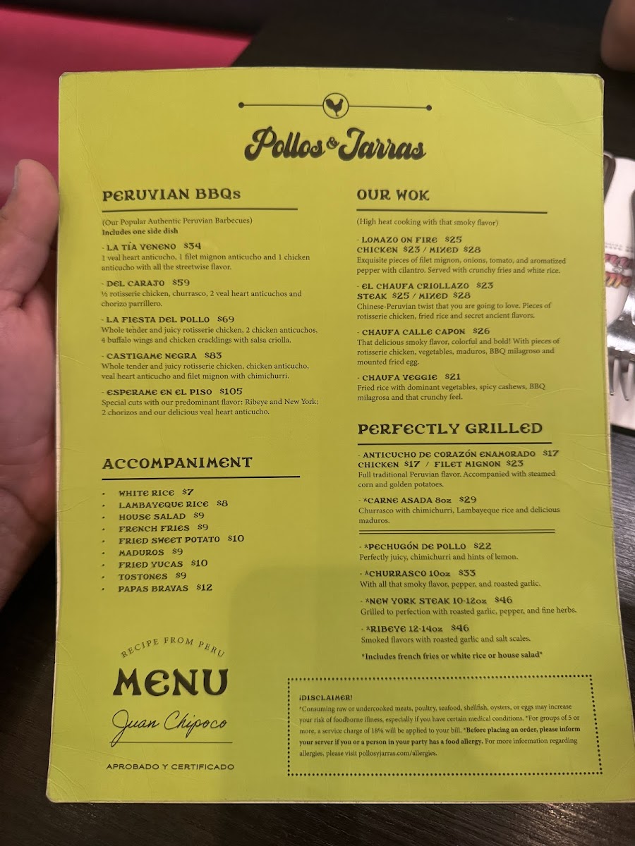 Customer experiences speak volumes about Pollos & Jarras. Ellen raves about the “absolutely incredible” food and “delightful” dessert, while Carmen describes the juicy rotisserie chicken as an “amazing choice” that made her family’s dining experience truly memorable. Shayna echoes this sentiment, exclaiming that it's the “best food, drinks, service” she has ever enjoyed, creating a perfect dining moment. But even amidst these stellar reviews, there are whispers of needed improvements—such as a request for more Peruvian music to enhance the atmosphere.